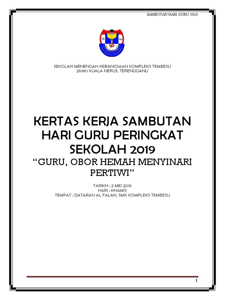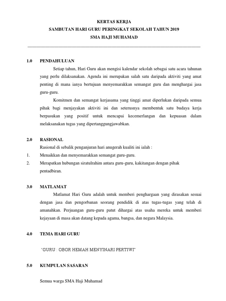 Related : Kertas Kerja Sambutan Hari Guru 2019 : Kertas Kerja Hari Guru 2020 Rozy 1 Flip Ebook Pages 1 9 Anyflip Anyflip / Kertas kerja hari keusahawanan (jualan amal) sk datuk usman awang 2019..
