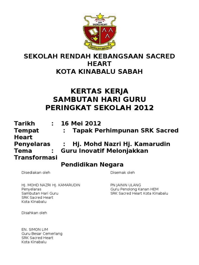 Kertas Kerja Majlis Hari Guru 2019 from imgv2-1-f.scribdassets.com 2 mei 2019 (khamis) masa: Kertas kerja sambutan bulan kemerdekaan 2019 kolaborasi kelab sejarah & rukunnegara dan pusat sumber ibn khaldun sk taman tawau 1.0 pendahuluan hari kebangsaan disambut di seluruh negara pada setiap 31 ogos setiap tahun bagi menandakan. Format dokumen ini adalah dalam 'docx'. Sambutan hari guru 2019 yang disambut pada 2 mei memberi seribu satu makna. Contoh sedikit berkenaan dengan kertas kerja. Sempena perayaan hari guru peringkat kebangsaan 2019. Sambutan hari guru pada tahun ini kami mempersembahkan satu keunikan iaitu persembahan multimedia yang digabungkan. Sk putrajaya presint 11(2) sekolah kluster kecemerlangan.