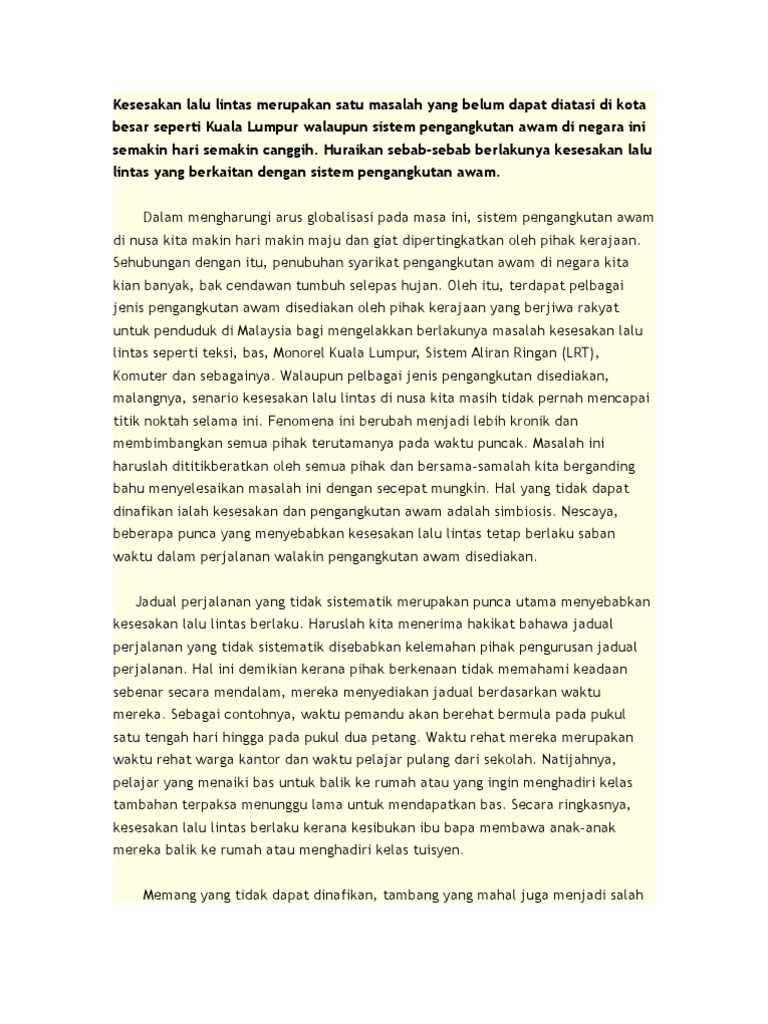 Selain kos hidup tinggi, kesesakan lalu lintas di kuala lumpur menjadi antara kebimbangan kebanyakan penduduk yang menetap atau bekerja di ibu sebelum berkahwin dan mempunyai anak, saya menaiki lrt ke tempat kerja kerana tidak perlu mengharungi kesesakan lalu lintas, cuma. Besar seperti kuala lumpur walaupun sistem pengangkutan awam di negara ini semakin hari semakin canggih. Kerap atau selalu melintas, sibuk (ke sana ke mari): Lalu lintas untuk berbagai keperluan. Pasti akan berlaku kesesakan lalu lintas dan mereka yang memandu pasti akan tertekan, penat dan berasa marah.